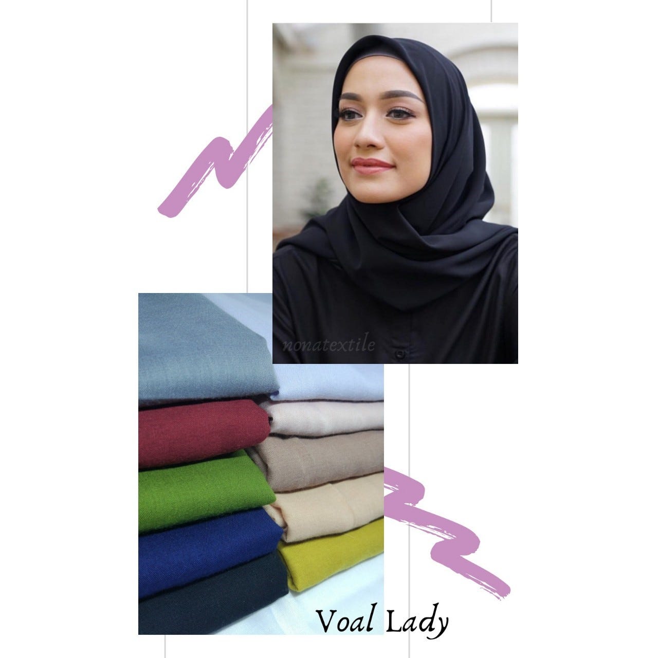 Jenis kain untuk jilbab segi empat.